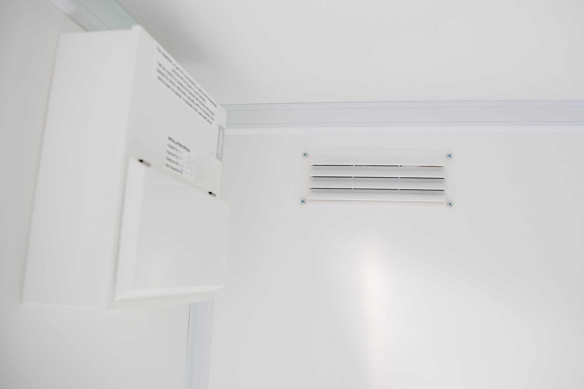 All electrics are surface mounted and the cabins are insulated and lined with white coloured washable melamine wallboards and grey vinyl floor covering.